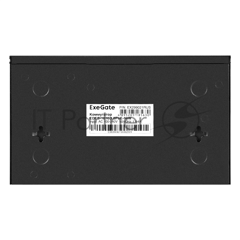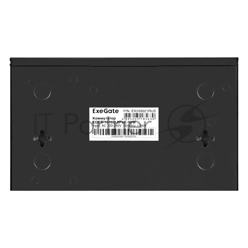 Коммутатор неуправляемый ExeGate EDES-1010D.8PoE-96W (10-портовый UTP 10/100 Base-Tx: 8 портов IEEE 802.3af (PoE), мощность PoE: 25W, суммарно 96W, 2 порта RJ45 uplink, настенный/настольный, металлический корпус)