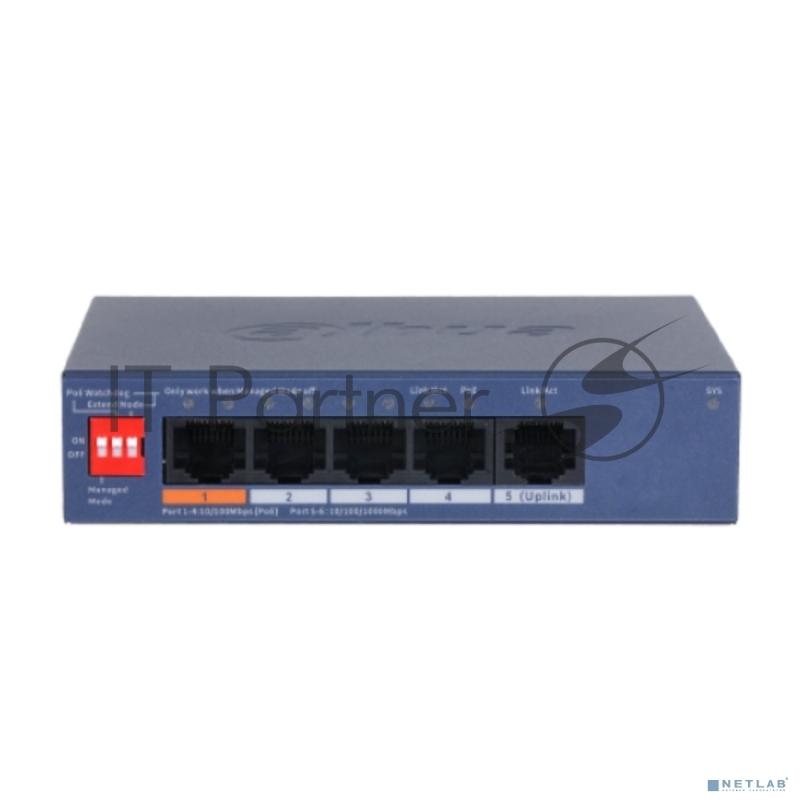 Коммутатор DAHUA DH-CS4005-4ET1GT-60 4-портовый гигабитный PoE с функцией облачного управления, 4xRJ45 100Mb, 1xRJ45 1Gb uplink, суммарно 60Вт