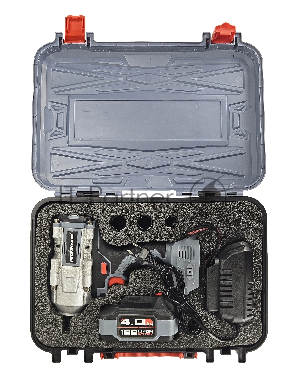 Аккумуляторный гайковерт бесщеточный ударный ProfiPower T-900N (Li-ion-1шт, 4.0Ач, 900Нм, ударная головка 17/19/21мм, З/У, в кейсе)