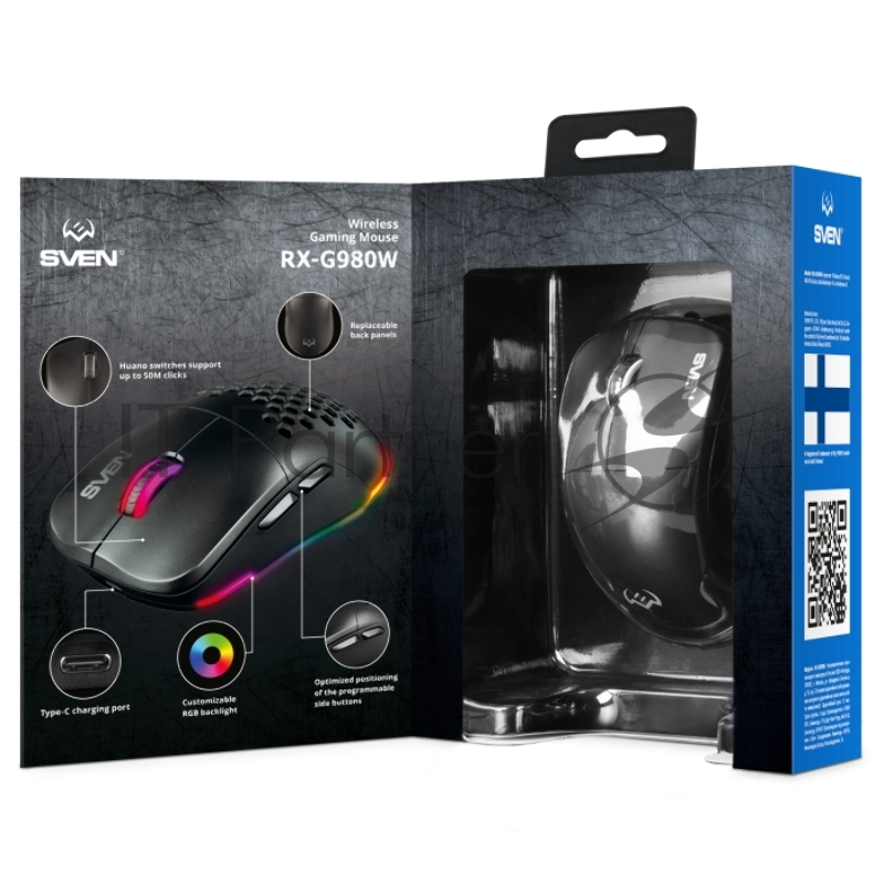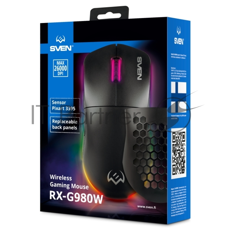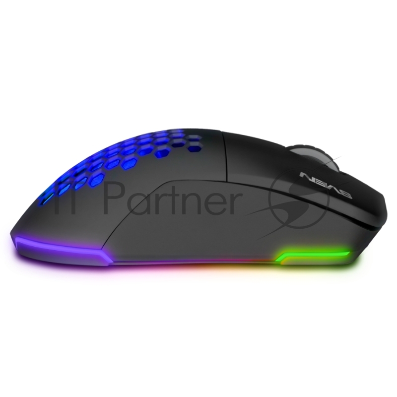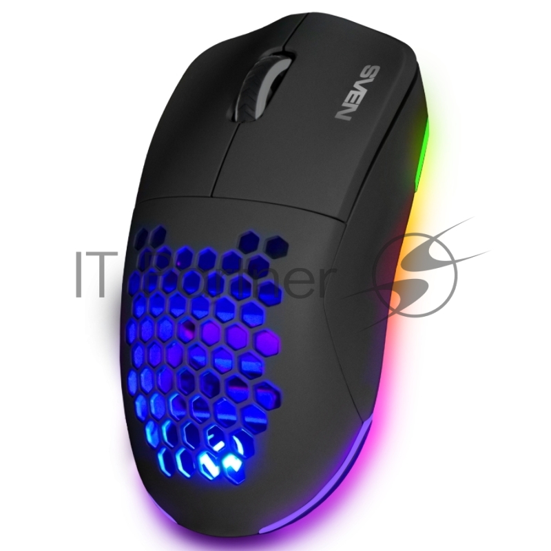 Мышь беспроводная SVEN RX-G980W чёрная (6+1кл. 50-26000 DPI, ПО, RGB-подсветка, игров. упак)