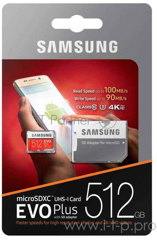 Карта памяти Micro SecureDigital 512Gb Samsung EVO Plus v2 Class 10 MB-MC512GA/RU {MicroSDXC Class 10 UHS-I U3, SD adapter}