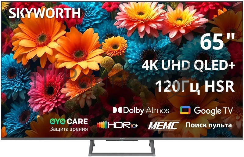 Телевизор QLED Skyworth 65 65Q67H Google TV Frameless черный/серебристый 4K Ultra HD 60Hz DVB-T DVB-T2 DVB-C DVB-S DVB-S2 USB WiFi Smart TV