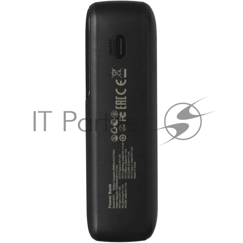 Мобильный аккумулятор Tecno Pocket S201 20000mAh 2.4A 2xUSB-A/USB-C черный