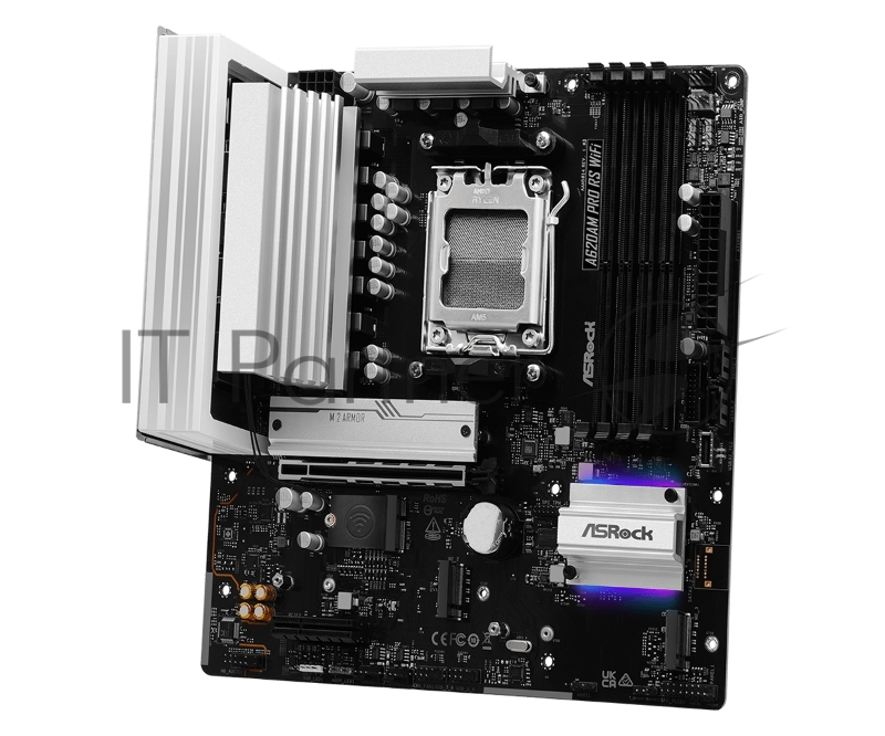 Материнская плата ASROCK A620AM Pro RS WiFi, AM5, A620, 4*DDR5, 4*SATA, 3*M.2, 4*USB 2.0, 4*USB 3.2, Type-C, 2*PCIx16, 1*M.2 (Key E), HDMI+DP, mATX