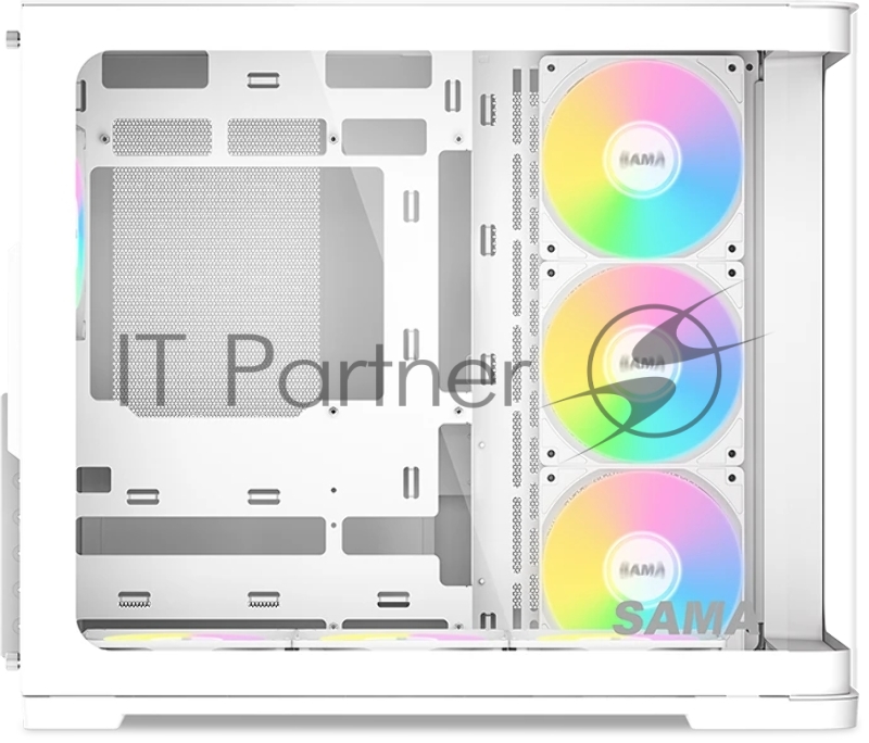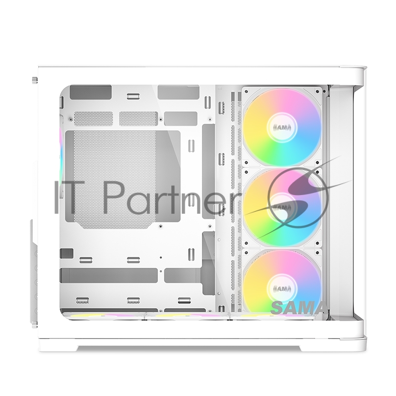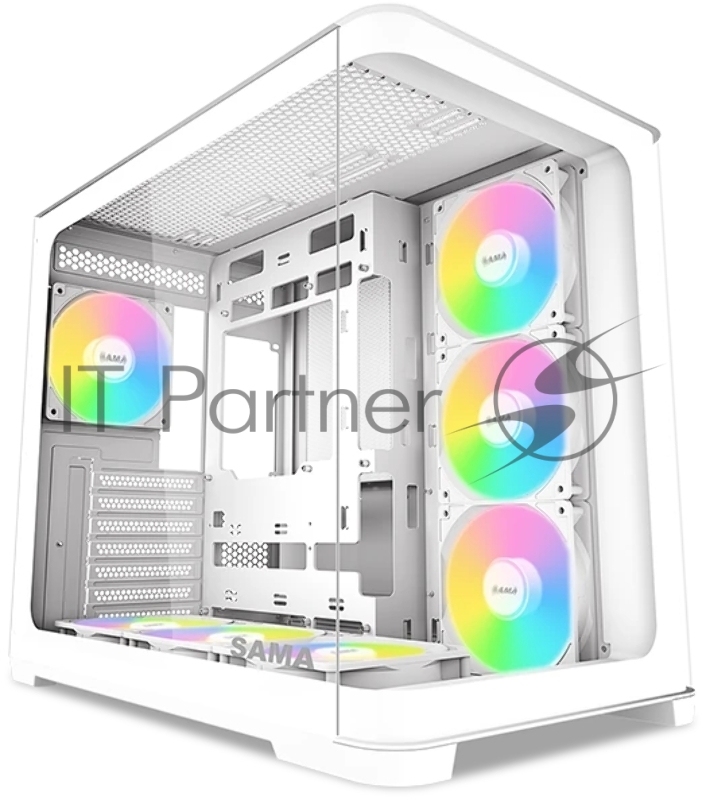 Корпус ПК без блока питания SAMA V60 White, Midi-Tower, TG, 7x120mm ARGb, 2xUSB 3.0 + 1xUSB 3.1 Type-C, ATX, mATX, mITX White