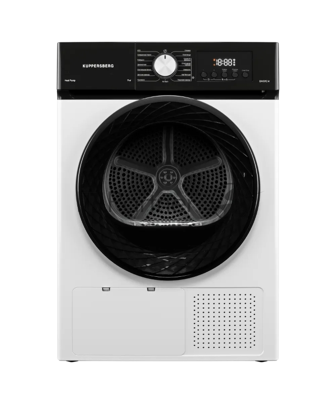 Сушильная машина Kuppersberg DM 592 W, High-Tech, загрузка 9 кг, 15 программ, тепловой насос, электронное кнопочное управление, корзина для сушки, блокировка от детей, энергоэффективность А++, цвет белый